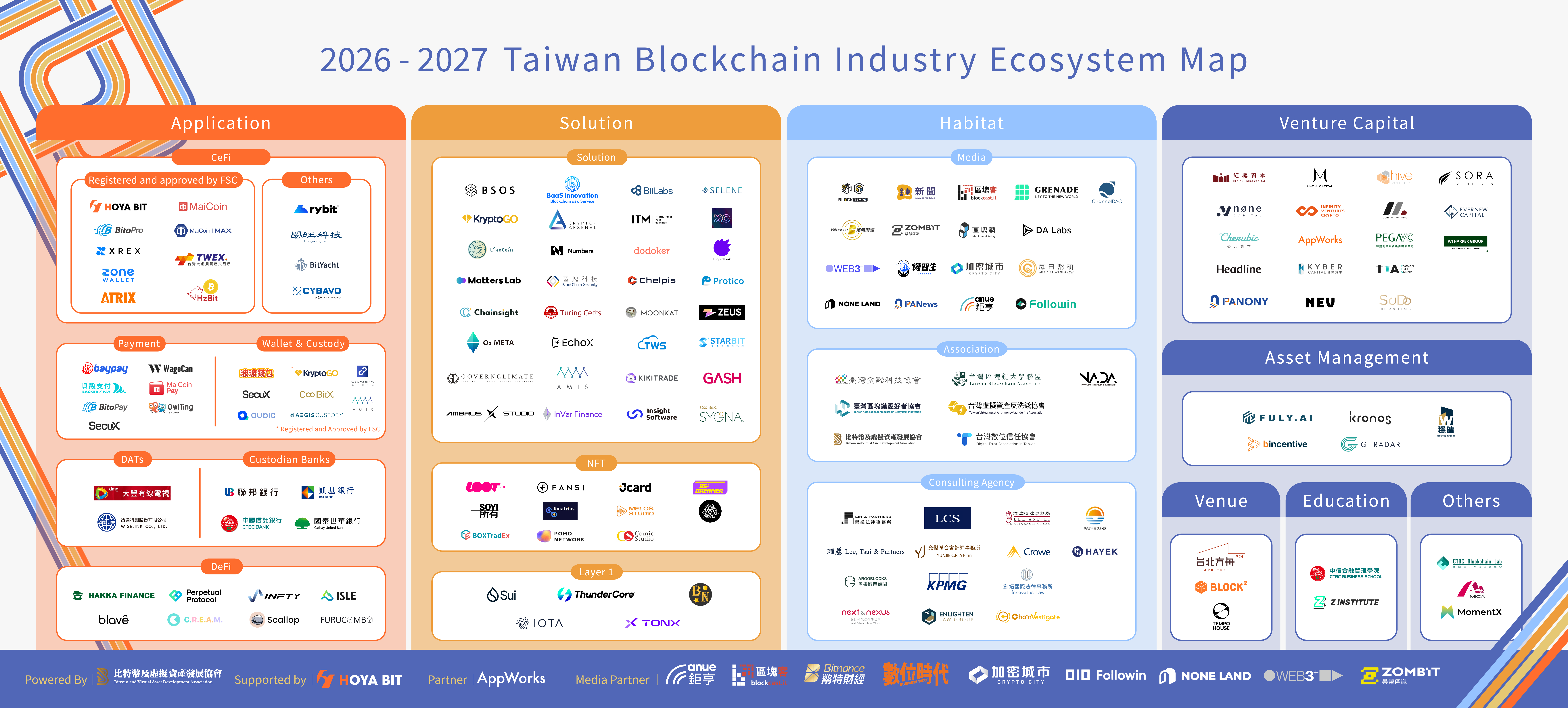 As a NPO advocating for Bitcoin and cryptocurrency policies in Taiwan, the Bitcoin and Virtual Asset Development Association has conducted a new round of industry surveys based on the “2023-2025 Taiwan Blockchain Industry Key Report and Ecosystem Map.” We proudly present the “2026-2027 Taiwan Blockchain Industry Ecosystem Map,” offering an in-depth analysis of the sector's latest developments and future potential.